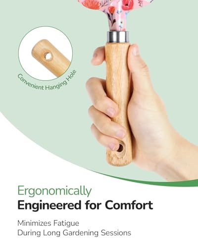 Ergonomic & Comfortable Wooden Handles: Our gardening tools feature ergonomic, solid wood handles that provide a comfortable, firm grip, reducing hand and wrist strain during long gardening sessions. Whether digging, weeding, or pruning, these gardening tools are designed to make gardening effortless and enjoyable