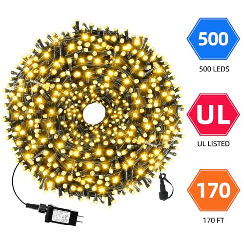 170FT 500 LED Christmas Lights Outdoor Indoor, Waterproof Christmas Tree Lights for Christmas Decorations with Timer, 8 Modes Memory Function (Warm White)