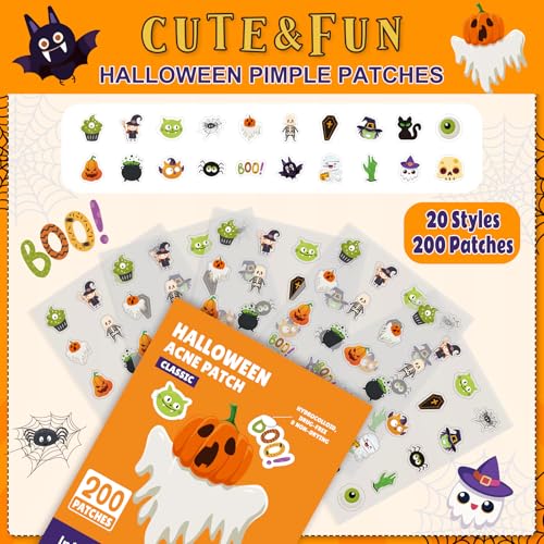 [Package Included]: One box contains a whopping 200 individually wrapped Halloween acne patches—enough to meet your various needs. Whether you’re using them for a full-face emergency acne breakout or sharing with friends and family, this box will cover you all Halloween season long