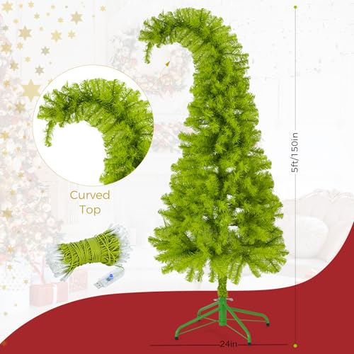 Festive 5ft Size & Full-Bodied Look: This 5ft tall Whimsical Christmas tree features a vibrant green color , creating a lush, full appearance. Its unique design starts with a wide base that narrows gently and curves at the top, adding a playful, whimsical touch to your holiday decor—perfect for bringing Christmas cheer to any indoor space.