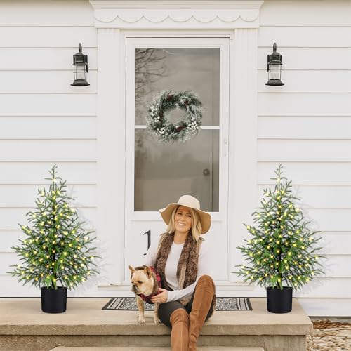 【3FT Realistic Pre-Lit Christmas Tree】- Designed with soft-touch Norfolk pine needles and a naturally layered shape, this 36-inch faux tree brings festive elegance to small and medium spaces.