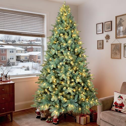 💪 Automatic hinge design: This 7.5ft christmas tree is equipped with pre-installed hinged branches and a segmented installation structure. Once the main body is connected, the branches will automatically unfold. Simply fluff the branches to achieve the best full and natural effect. Quick and convenient.