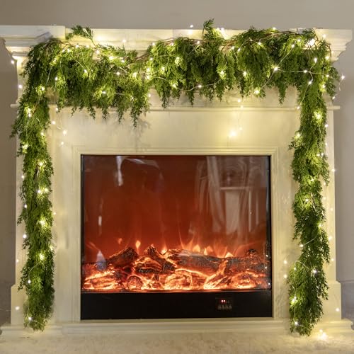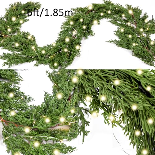 6FT PARTY JOY Seasonal Artificial Christmas Garland with LED String Lights Pine Needle Cypress Garland for Holiday Winter Indoor Outdoor Decor