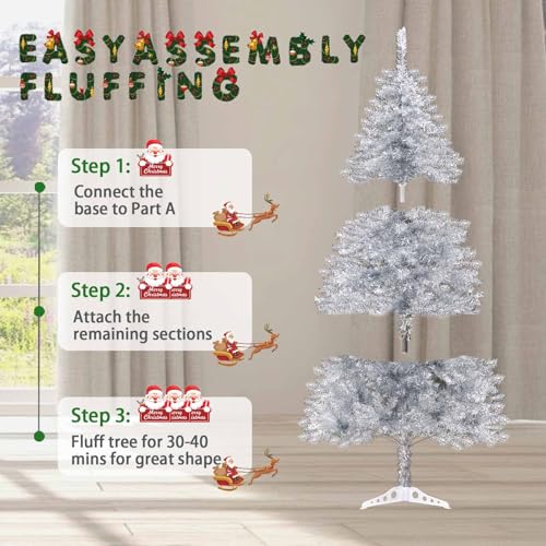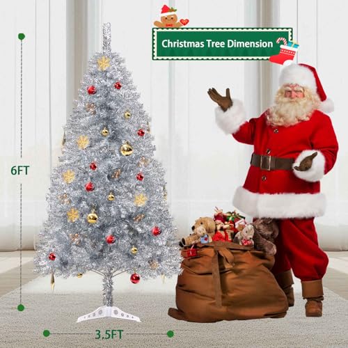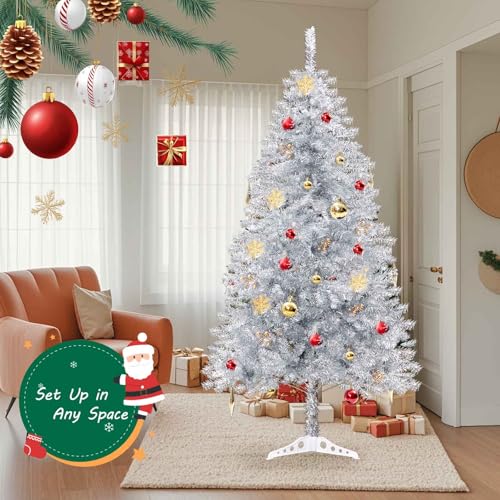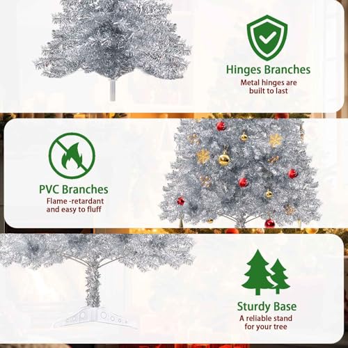 Specification: 6Ft Silver Christmas Tree, Artificial Christmas Tree with 550 Branch Tips for Home, Indoor, Outdoor, Halloween Holiday Decorations