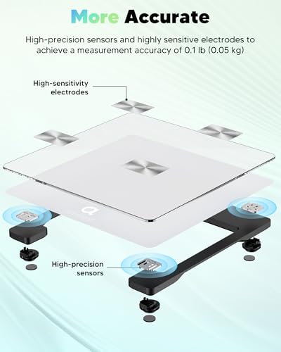 Advanced BIA Technology for Deeper Insights: Equipped with BIA technology, 4 high-sensitivity electrodes, and 4 high-precision sensors, the Arboleaf smart scale delivers accurate, consistent readings of weight, body fat, muscle mass, and more—down to 0.1 lb / 0.05 kg