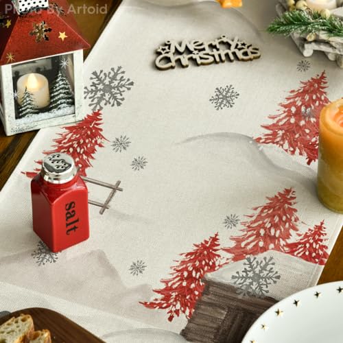 Specification: Artoid Mode Xmas Trees Let It Snow Red Snowman Christmas Table Runner, Seasonal Winter Holiday Kitchen Dining Table Decoration for Home Party Decor 13×72 Inch
