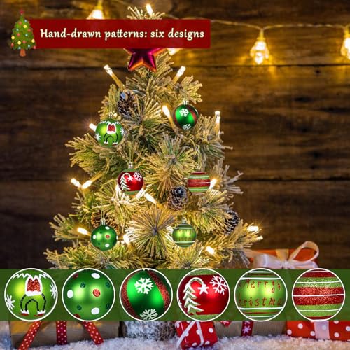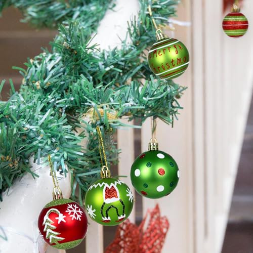 Special-Themed Christmas Balls Ornaments Set – Bring festive charm to your holidays with this set of 16 beautifully crafted Christmas tree ornaments, each measuring 2.36 inches in diameter. Featuring 6 styles designs, these decorations combine a green color theme with classic red and white accents—perfect for creating a cohesive and cheerful Christmas tree decorations.