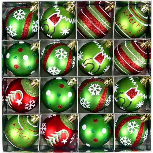 Specification: Christmas Balls Ornaments Set, 16Pcs 2.4 Inch Christmas Tree Ornaments, Green Shatterproof Christmas Tree Balls for Xmas Decorations