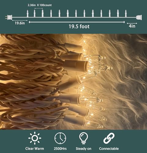 Specification: Christmas Lights 100 Count Clear Christmas Tree String Lights with White Wire for Outdoor Indoor Christmas Decorations Wedding Decorations Valentines Day Decor,UL Certified (21feet)