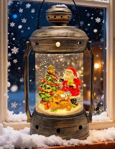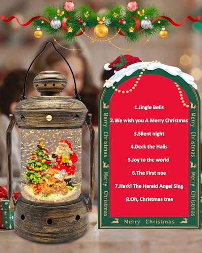 Specification: Christmas Snow Globes, Vintage Musical Christmas Snow Globe Lantern, Lighted Christmas Santa Claus Snow Globe with Snowman Water Swirling Glitter and 6H Timer, Christmas Decorations Gifts