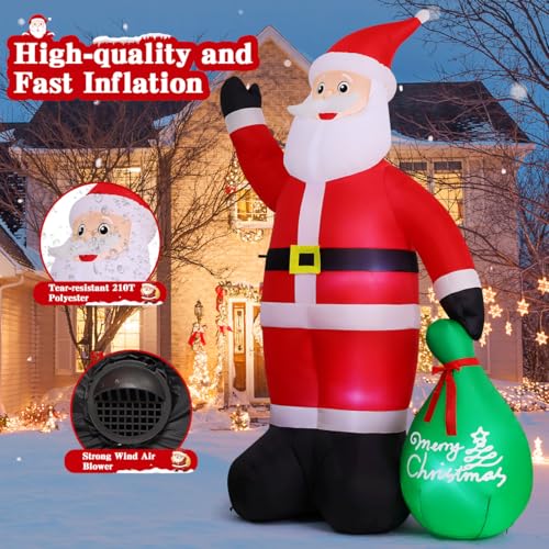 Specification: GOOSH 10.3 FT Waving Christmas Inflatable Santa Decorations, Outdoor Christmas Santa Claus with Gift Bag&Animated Hand Blow Up Yard Decor with Built-in LEDs for Xmas Holiday Party Garden Lawn
