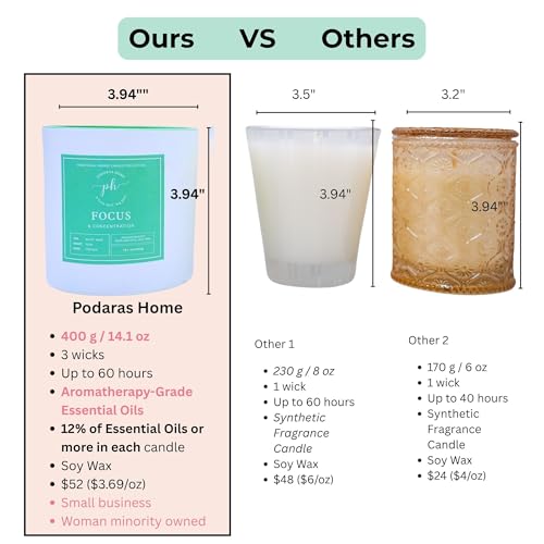Specification: Luxury Candle for Focus & Concentration, Manifesting Vibrational Energy Candle, 100% Essential Oil, Soy Wax, 400g, 60 hrs of Burn time