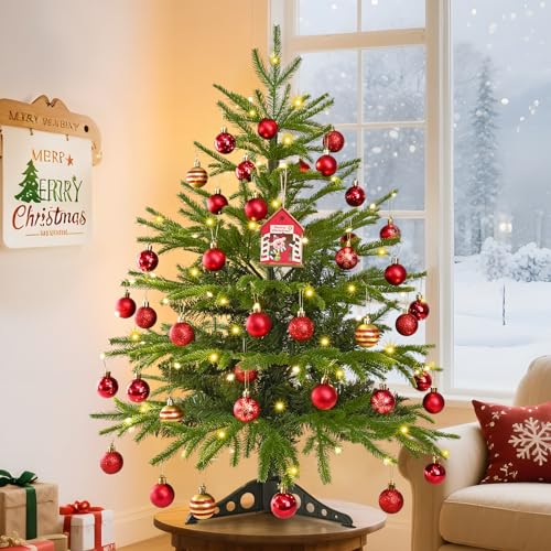 Specification: MARTINE MALL 3FT Realistic Norfolk Pine Tree Small Christmas Tree with 50 LED String Light, Full Mini Christmas Tree Artificial Tabletop Xmas Trees with Red Hanging Ball Ornaments for Table Holiday