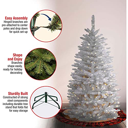 Specification: National Tree Company 4.5 ft Pre-Lit Kingswood Fir Slim Artificial Christmas Tree, 150 Clear Lights, Includes Stand, White