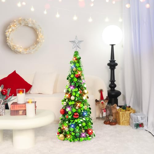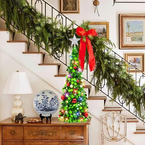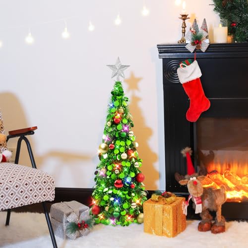 Specification: N&T NIETING Pop Up Christmas Tree with Lights & 25 Balls, 3Ft Collapsible Green Tinsel Xmas Tree Decorations, Pencil Christmas Tree Skinny Tree for Holiday Xmas Home Office Decor, Green