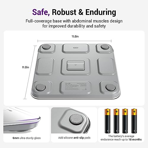 Safe and Durable: Designed with full-coverage base and 6mm tempered glass, the scale is sturdy and durable which is safe for the elderly and children. Also, the 4*AAA batteries included can last for 18 months