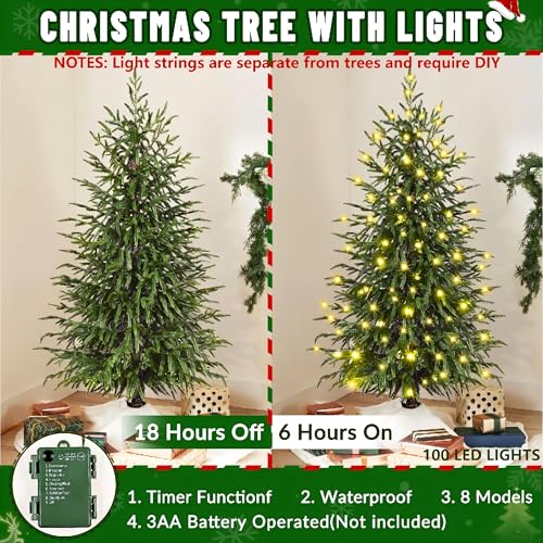 Specification: Waipfaru 4FT Christmas Tree with Lights, Real Touch Norfolk Pine Tree, Artificial Cypress Christmas Tree Potted, Xmas Tree for Indoor Outdoor Home Front Porch Christmas Decor