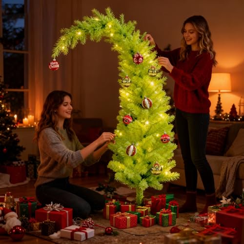 FRESH LEMON-GREEN HUE FOR A JOYFUL GLOW: Whimsical christmas tree, Brighten your holidays with a burst of lemon-green color that stands out day and night. Unlike traditional deep green trees, this vibrant shade adds a modern, cheerful energy to your space—perfect for creating memorable, Instagram-worthy moments.