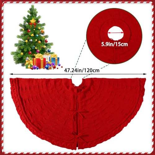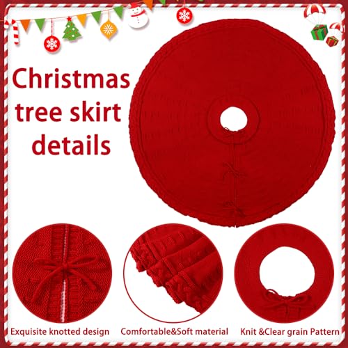 YUJUN 48 Inches Christmas Knitted Tree Skirt Decorations Xmas Large Red Chunky Cable Farmhouse Thick Rustic Tree Skirt for Merry Christmas Tree Holiday Home Party Decoration